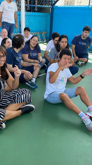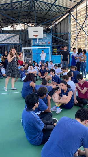 Depois a partir da letra da música, os alunos e professores sentiram a força do movimento e da voz de todos juntos cantando ao final da atividade, promovendo um “grito de guerra”, um “hino de ação”, um “propósito coletivo” para ser entoado por todo ano de 2023 formando e fortalecendo uma rede de pessoas que promovem o bem e querem melhorar o mundo.