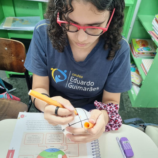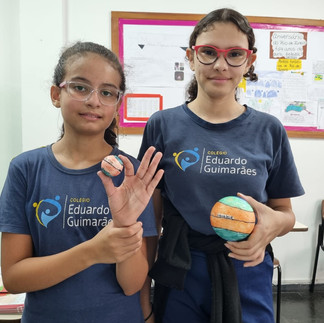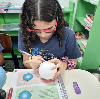 Para ilustrar o assunto, os alunos desenharam as linhas imaginárias em bolas de isopor, assim, ficou mais fácil e divertido aprender.