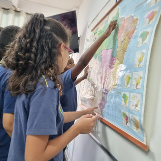 As turmas do 4º e 5º ano iniciaram o conteúdo “Mapas”, explorando o mapa do Brasil. Observaram as Regiões, Estados e suas Capitais, e localizaram o lugar em que vivem!
