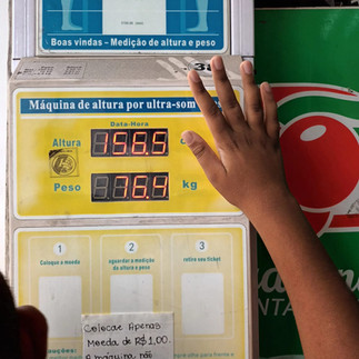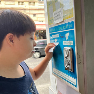 Como parte desse processo, os alunos do Atendimento Especial realizaram uma pequena saída pedagógica até uma farmácia próxima à escola. Durante a visita, eles utilizaram uma balança que mede altura e peso, registrando informações importantes sobre o próprio corpo.